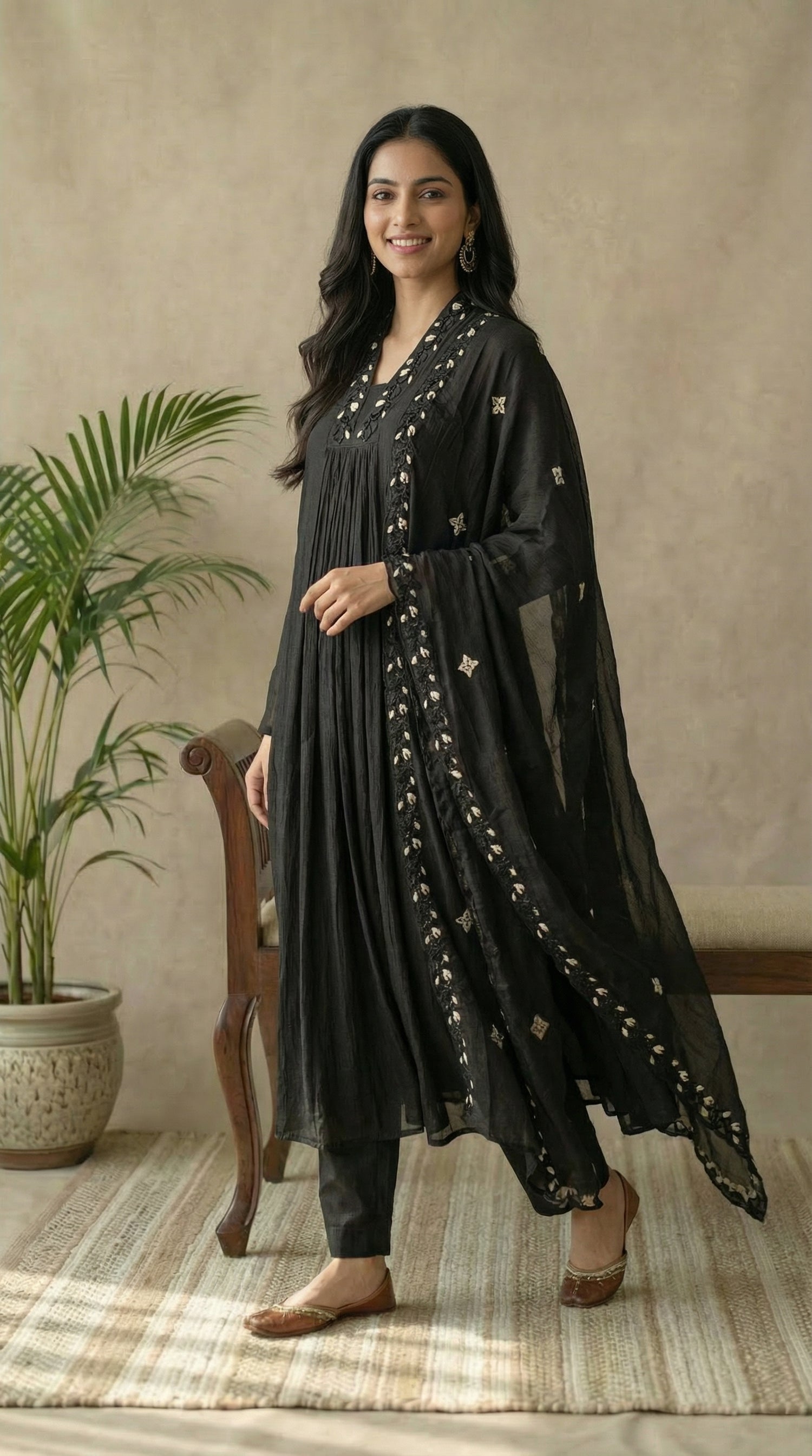 Black Chinon Embroidered Kurta Set with Dupatta