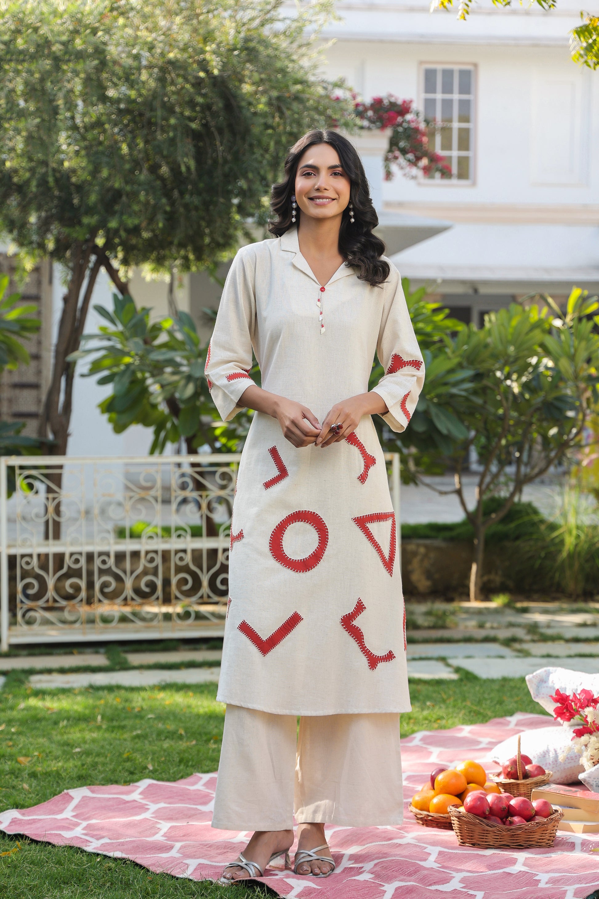 Off White Solid Khadi Cotton Palazzo Suit Set